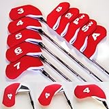 ウッドやユーティリティと同様に、アイアンもやはりキズが付きます。カバーをかけて労わってあげて下さい。キャディーバックから金属音が消えたことに驚かれると思います!。量産品ではなく、職人さんが1つ1つ手作業で仕上げた、シンプルかつ丈夫なクラフトカバーです。一見シンプルに見えるアイアンカバーにも手作業だからこそ出来る工夫が細部に施されています。右用、左用、両アイアンにご使用頂けるよう番手プリントは両面仕上げにしてあります。フォントは目にも鮮やかな英角ゴシック!、これでしたらクラブ選択の際、キャディーさんも大助かりです!。素材は伸縮性にとんだネオプレン地で、雨の日のラウンドもOKです!。カバーサイズは現在主流のラージヘッドに合わせた(8.5cm×13.5cm)の大き目サイズです。